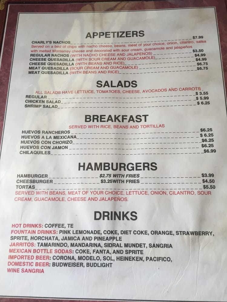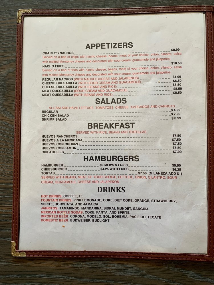 Charly's Restaurant Menu