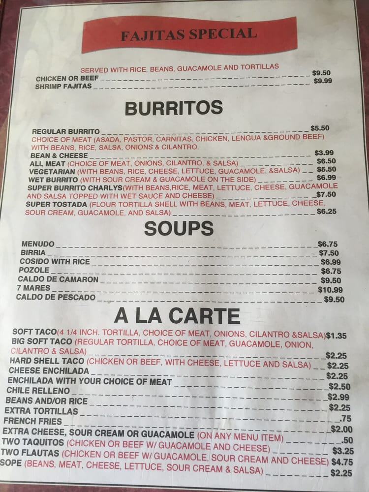 With options for delivery, takeout, and catering, alongside amenities like outdoor seating and Wi-Fi, Charly's truly caters to all. Customer reviews reflect exceptional service and unforgettable food that brings diners back time and again. Experience authentic Mexican hospitality at its best!